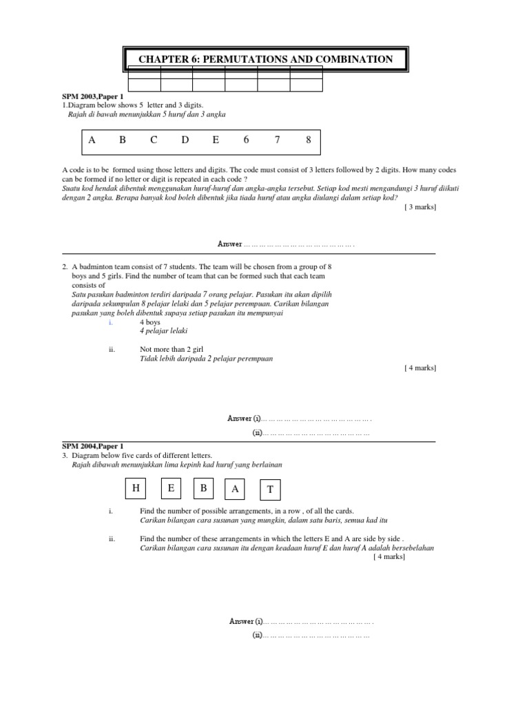 Hasilkan dan hitung gabungan pendua daripada senarai. Form 5 Add Maths KSSM Chapter 4. Rajah di bawah menunjukkan lima keping kad huruf yang berlainan.