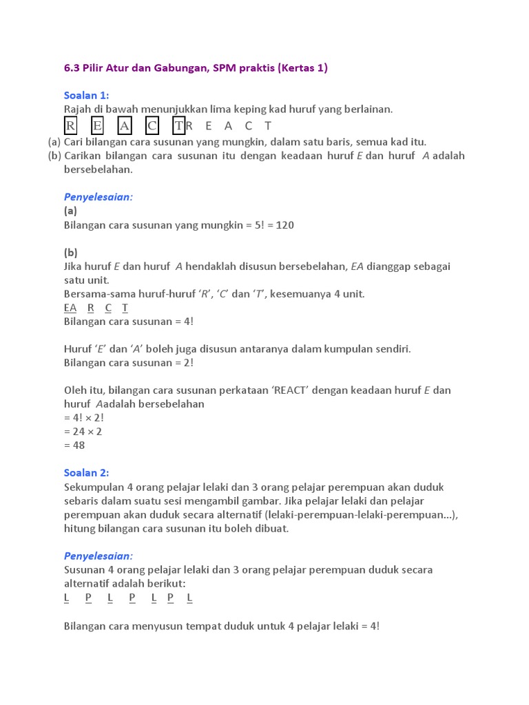 Matematik Tambahan Pilih Atur Dan Gabungan